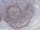 T細胞のサブセット(helper/inducer)表面に発現する12p 13.3,458aa,約59kDaの糖蛋白。T細胞上のTCR-CD3複合体と抗原提示細胞のMHC class II分子との結合を補助する。ホルマリン固定:要熱処理、過酸化水素による内因性Pox活性のブロック処理は抗原エピトープに強く影響するので、例え一般的protocolに対応できるというclone:4B12であっても過酸化水素濃度を0.5%以下に下げるか、一次抗体反応後に行う方が賢明。